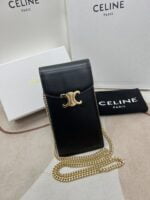 CELINE 2022🌼 New product – Arc de Triomphe mobile phone bag, toothpick print calfskin texture is excellent, large Arc de Triomphe hardware logo embellish, simple and unique C family wind