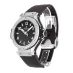 The Hublot Big Bang Steel Black Dial Diamond Bezel 361.SX.1270.RX.1104 Replica is a luxury watch. It features a 904L stainless steel case and bezel. with a black rubber bracelet and adjustable links. The dial is a mix of stick indices and 904L stainless steel hands. and the movement is an automatic HUB 4100 caliber with a 60-hour power reserve and precision of -3/+3 sec/day within COSC certification limits. The watch is also water-resistant up to 30m and comes with a full 2-year international warranty.
