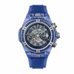The Hublot Big Bang Unico Red Sapphire 411.JR.4901.RT.1902 Sapphire Replica is a luxurious watch that is sure to turn heads. It features a 45.00 mm resin. sapphire. and gem set case in a striking blue color. The bezel is made of resin and sapphire and is black in color. The crystal is a sapphire crystal for added durability. The bracelet is made of rubber and is adjustable for all sizes. It also features a double-fold clasp made of stainless steel and black in color.