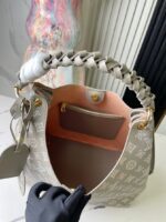 Black and white screen printing This bag is made of imported taurillon calf leather! Its fashion silhouette is very youthful, full leather punching woven wrist gradual silk screen printing silk screen shopping bag double tag women’s satchel oo[handshake][handshake] random slant on the shoulder is particularly beautiful, 53188, oversized shiny palladium copper lv twist lock seal, add avant-garde atmosphere. Size: 35x40x17cm