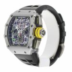 The Richard Mille RM 011-03 Titane Flyback Chronograph Automatic Replica is a luxurious watch that is sure to impress. It features a 904L stainless steel case and bezel. with a sapphire crystal for added protection. The movement is an automatic RMAC3 caliber. with a power reserve of 60 hours and precision of -3/+3 seconds per day within COSC certification limits. The dial features Arabic numerals and 904L stainless steel hour markers. with a stick hand design.