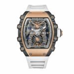 The Richard Mille RM 70-01 Tourbillon Alain Prost Automatic Replica is a luxurious watch with a 904L stainless steel case and black bezel. The case measures 49.48 x 54.88 mm and is 17.65 mm thick. The movement is an automatic caliber RM70-01 with a power reserve of 60 hours and a precision of (-3/+3 sec/day) within COSC certification limits. The second hand has a sweep motion. The bracelet is made of rubber and is adjustable for all sizes. with a 904L stainless steel fold clasp.The dial is black with triangle indices and 904L stainless steel stick hour markers and hands. The watch has a date function and a tourbillon. It has passed the 30m water resistance test and comes with a full 2 year international warranty. It is a perfect 1:1 super clone Swiss mechanism watch. with the same arrangeable serial numbers and cards. font. punto. and finishing for writings and markings. thickness. size. and powerful movement and caliber.