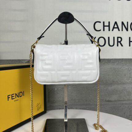 FENDI BAGUETTE Mini Chain Strap White Handbag Size: 4*18*11cm