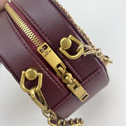 YSL saddle cowhide leather shoulder bag 0233 wine red size: 19*16*6cm